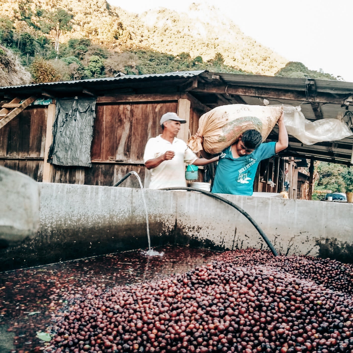 This natural Red Maragogype Criollo comes from Nuevo Vergel, a small community in La Concordia, Chiapas, located at around 1750 masl within the El Triunfo Biosphere Reserve. The Maragogype trees here are part of a traditional Red Maragogype line that was widely planted in Chiapas throughout the last century, before most plantings were replaced or crossed with other varieties.