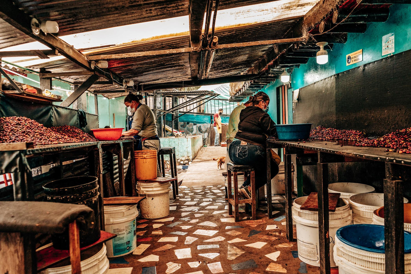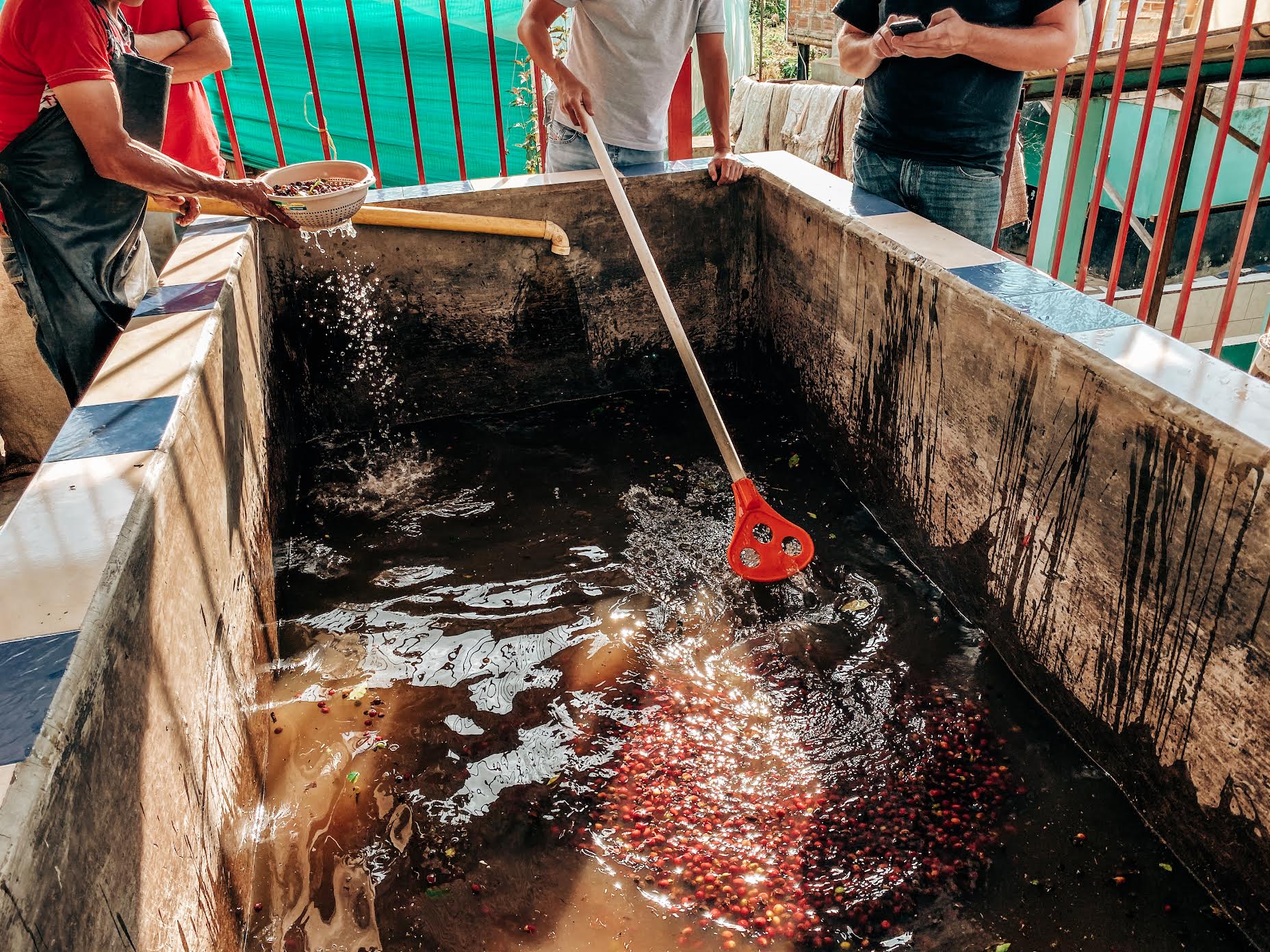 Ripe cherry from smallholder farms around Villamaría is delivered to La Aurora and moved the same day to Jamaica in Chinchiná. The station sits lower at 1,300 MASL, where warmer, steadier air allows slow, controlled drying and tight process control.