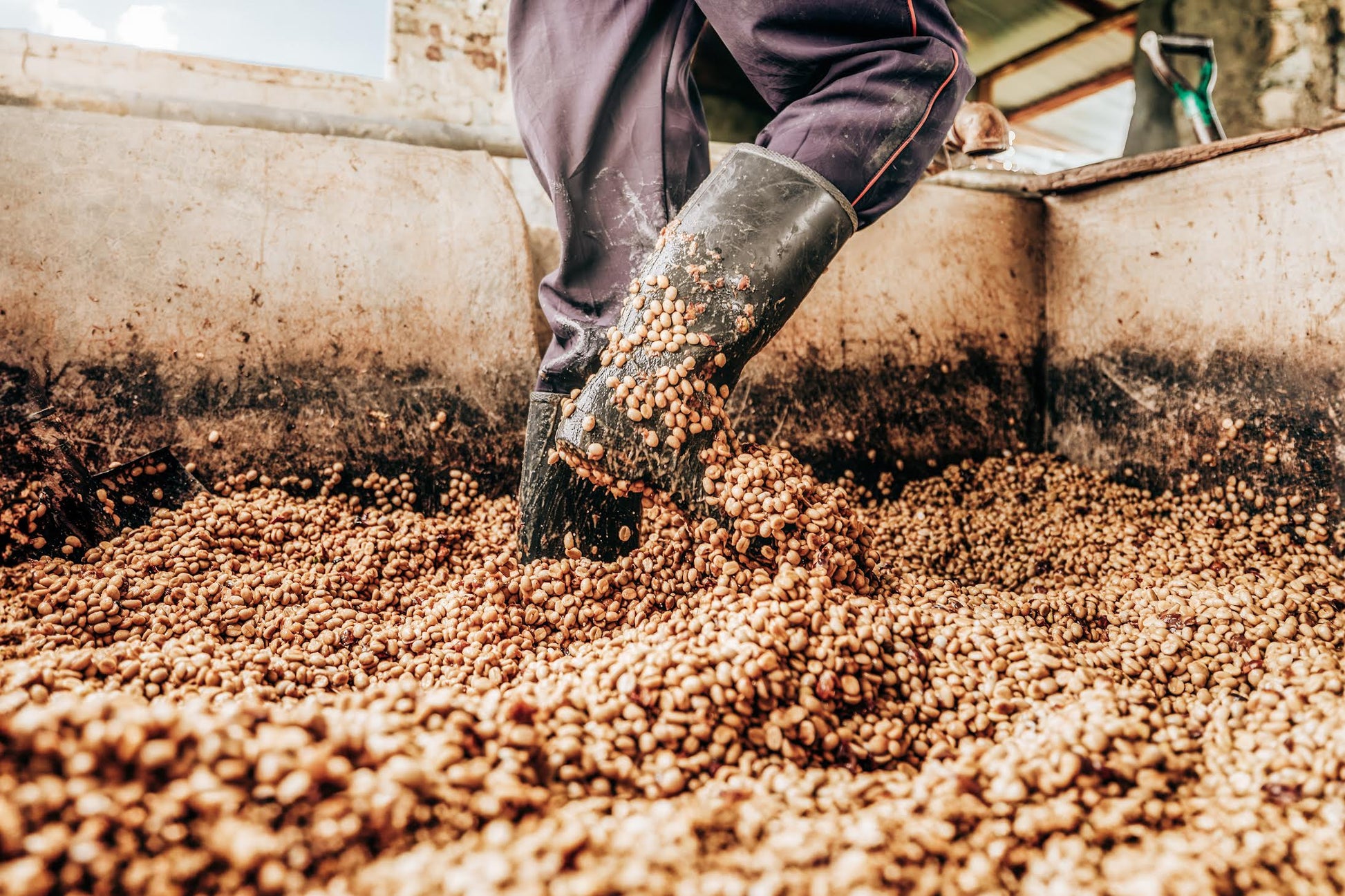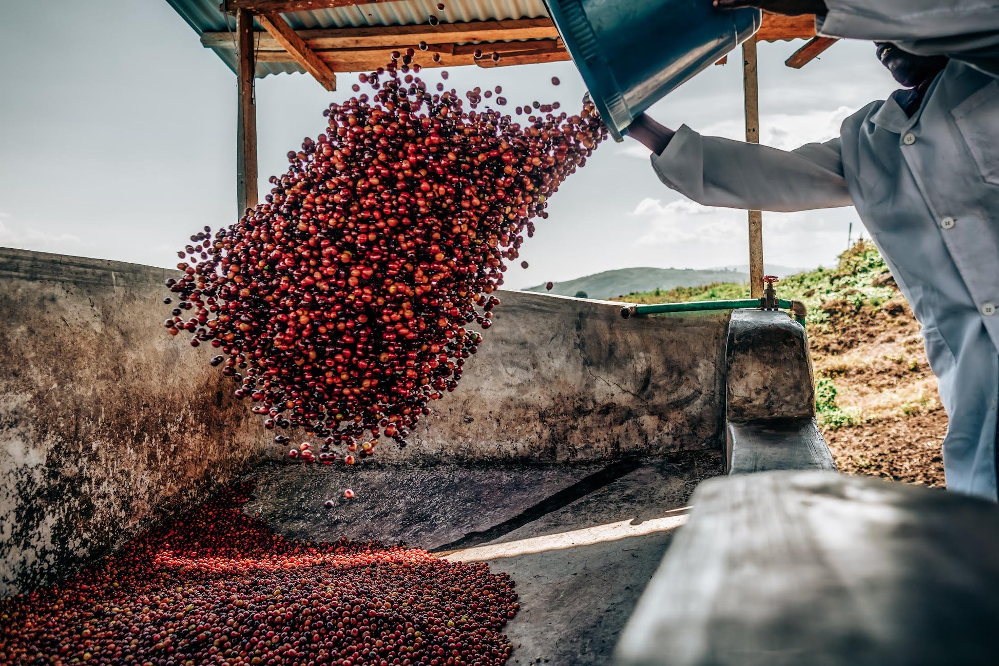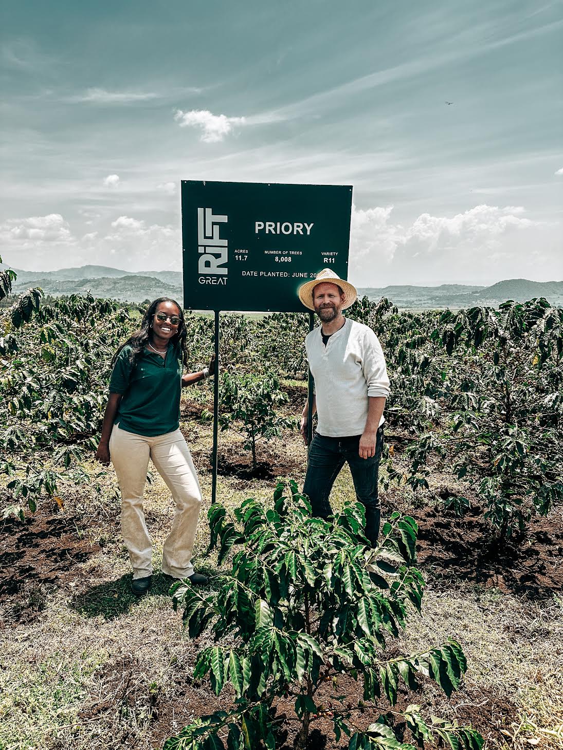 On their farm, varieties such as SL28, Batian, and Ruiru 11 are grown under the shade of indigenous trees, with bees, macadamia, and other crops supporting biodiversity and soil health. The coffee is hand sorted and floated before pulping and washing, followed by an initial stint on skin-drying tables to quickly remove surface moisture. It is then dried for 10–14 days on raised African beds, turned regularly and protected from both rain and midday sun. Once ready, the parchment is milled at Great Rift’s own facilities and hand-graded to ensure only the best beans make it to export.